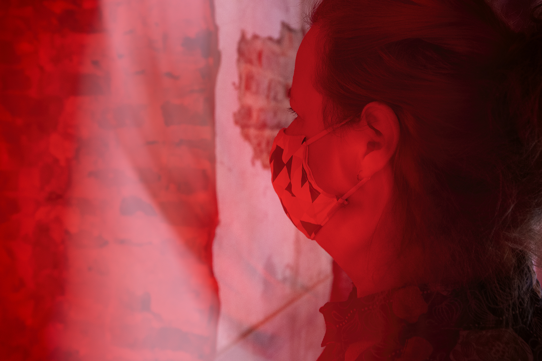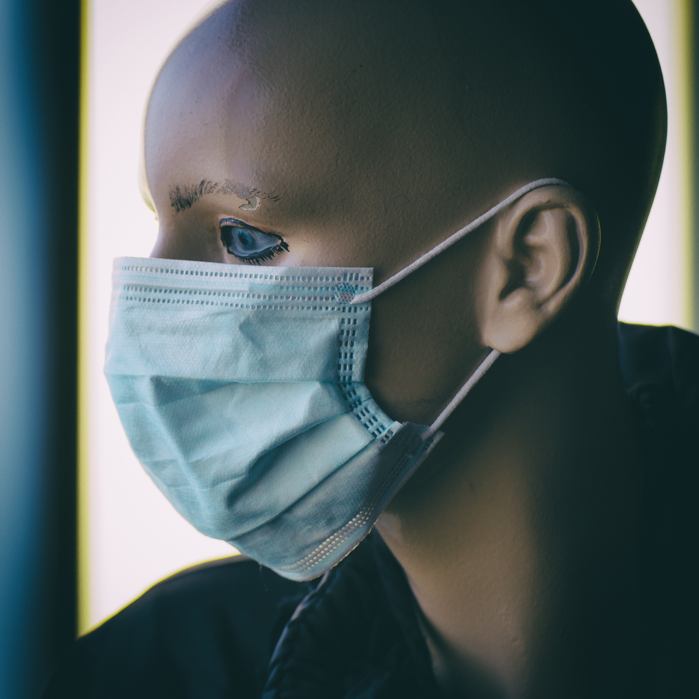 groet een onbekende met een mondmasker op